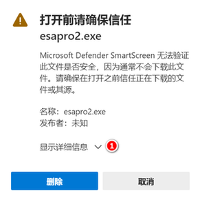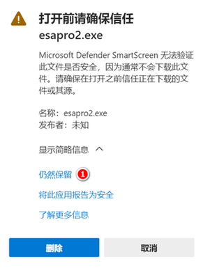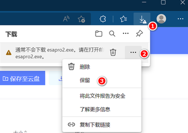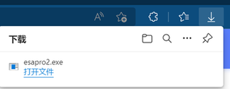 选择之后,浏览器将恢复文件。这时点击"打开文件",就可以进行软件安装。也可以在下载文件夹中,找到"esapro2"安装包,进行软件安装。