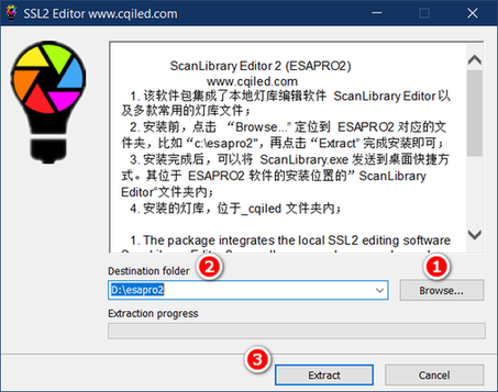 (3) 点击提取(Extract),将自动安装本地灯库编辑器