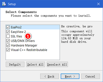 安装过程中,需要选择安装组件。其中,**"SSL files"**是软件自带的灯库文件。如果勾选,将从服务器下载安装,一般情况下,可以无需安装灯库文件。