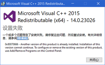 软件将自动安装 Microsoft Visual C++ 运行库,点击安装即可。如果你的电脑已经安装了更高版本的运行库,将出现设置失败的提示,点击安装,继续安装程序。